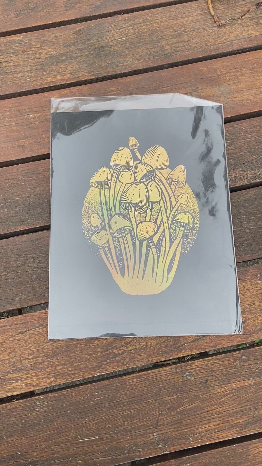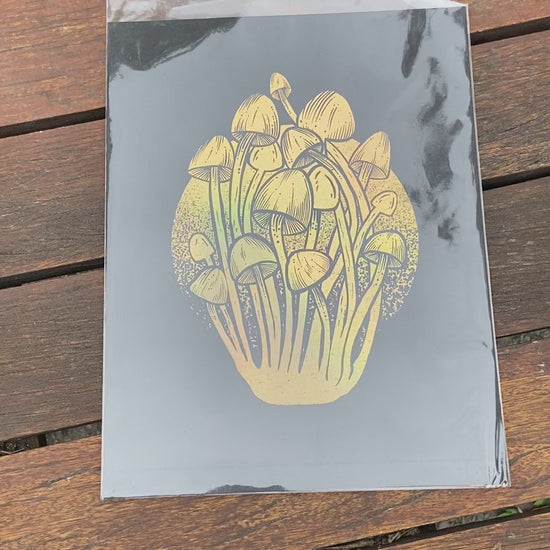 Gold Foil Enoki Mushroom Print